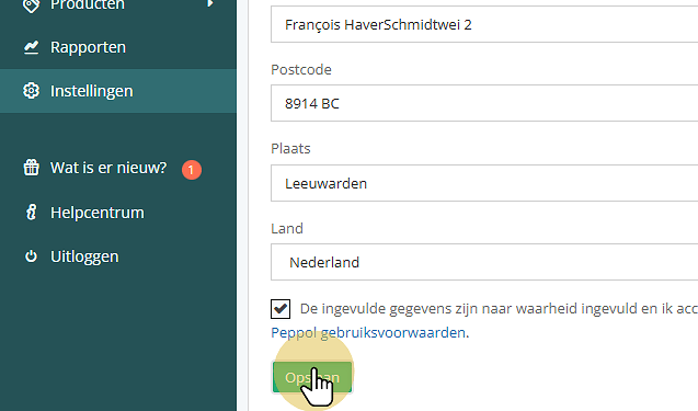 Controleer vervolgens de gegevens en accepteer de gebruiksvoorwaarden van Peppol.