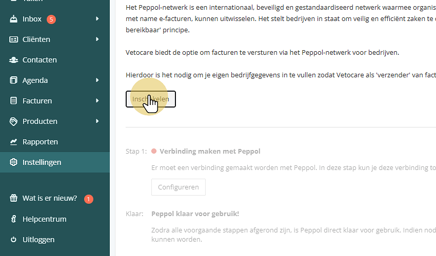 Het instellen van Peppol is heel eenvoudig. We hebben enkel een aantal gegevens nodig te validatie, zodat de juiste gegevens worden meegestuurd met de facturen.